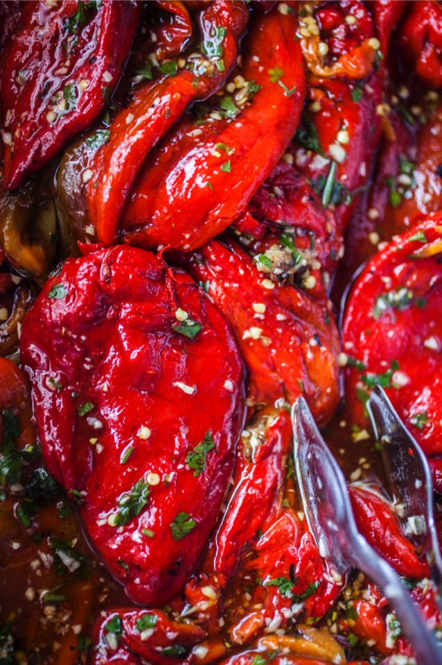 Of hou het lekker simpel en serveer de paprika’s in stukjes met wat goede olijfolie, verse kruiden als peterselie of basilicum en eventueel wat Pecorino of Parmezaan flakes.