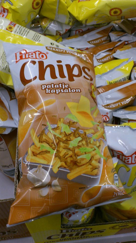 Naast de bekende Patatje Joppie chips van Lays bestaat er nu ook een chips met de smaak van een patatje kapsalon. Te vinden bij… Aldi! En een chips met de smaak van een patatje oorlog van Croky.