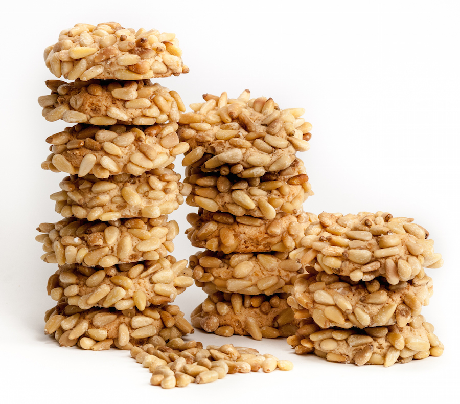 Pignoli: alleen de naam is al leuk. Deze Italiaanse delicatessen komen oorspronkelijk uit Sicilië. De koekjes worden gemaakt van amandelpasta en pijnboompitten. Luxe lekkernijen dus!