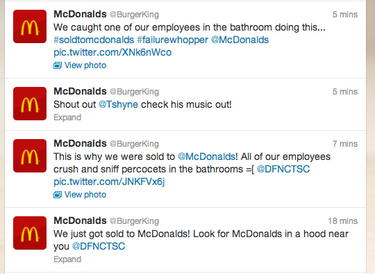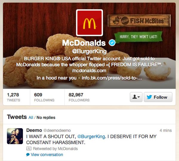 Op Internet is je account nooit helemaal veilig. Dat ondervond fastfoodketen Burger King gisteren aan den lijve; hun Twitter-account werd gehackt. En niet zomaar gehackt, maar omgetoverd tot een McDonald’s account. Oei!
