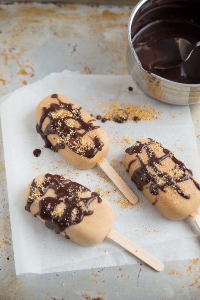 Bijna alles wordt extra lekker als je er een ijsje van maakt. Deze ijsjes met pindakaas en chocola zijn daar geen uitzondering op.
