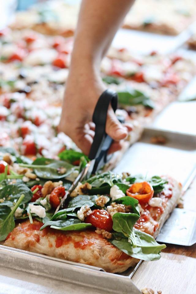 Bij het Amsterdamse Sugo verkopen ze elke dag twintig soorten pizza al taglio. De bodem maken ze van tarwe en spelt en soja, en het merendeel van de topping-combinaties is vegetarisch of zelfs vegan. Als klap op de vuurpijl wordt alles – van het deeg tot de sauzen – dagelijks in eigen keuken bereid.