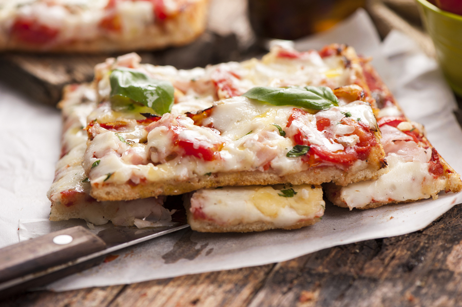 Door de rechthoekige vorm leent het gerecht zich uitermate goed om onderweg te eten en Italië zie je dan ook veel to-go restaurants de pizzastukken verkopen. Wat betreft de toppings kunnen we simpel zijn: net als bij gewone pizza is alles mogelijk. Van de simpele pizza margherita tot quattro formaggi!