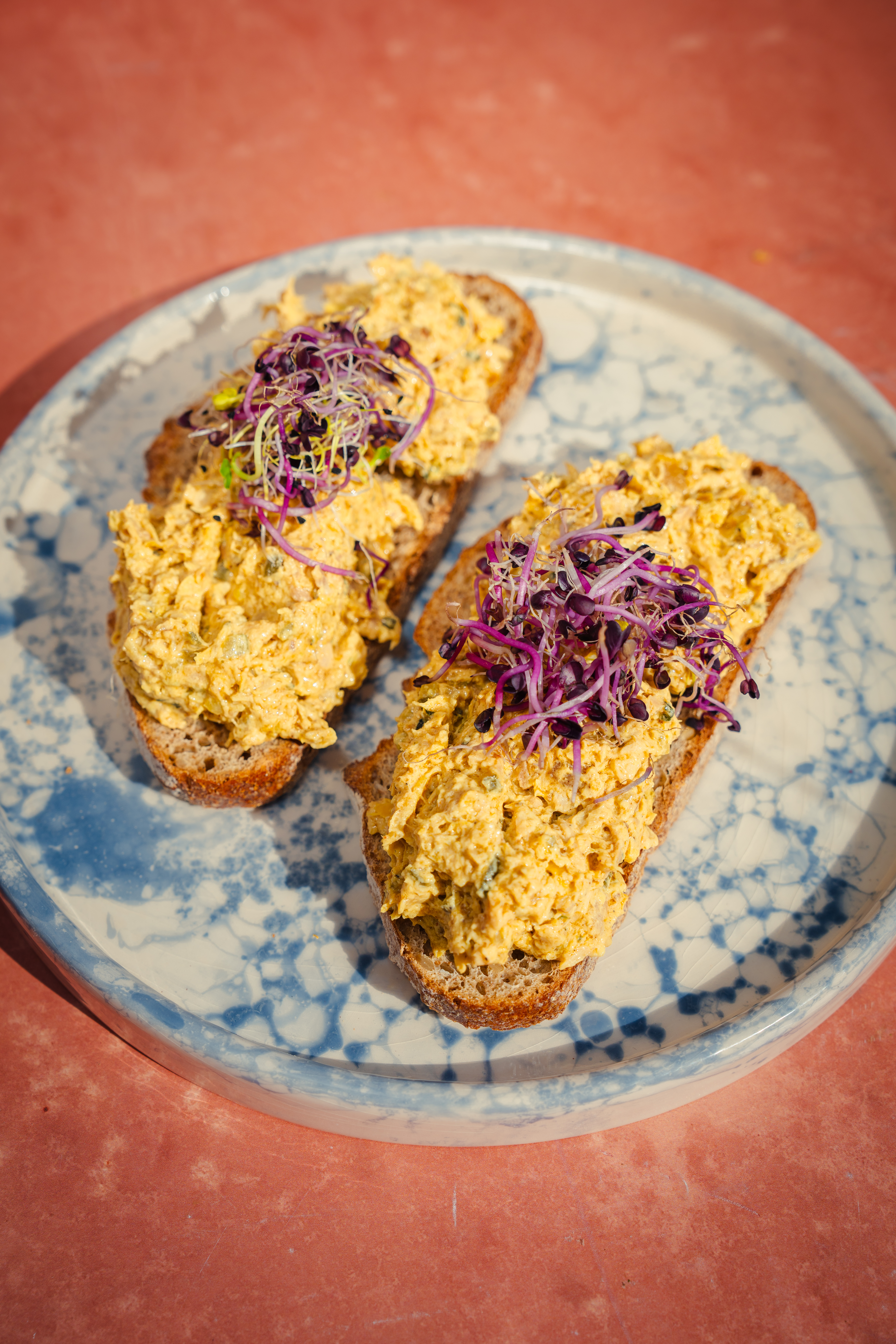 > Naar het recept: de lekkerste kipsalade voor op brood met miso en furikake