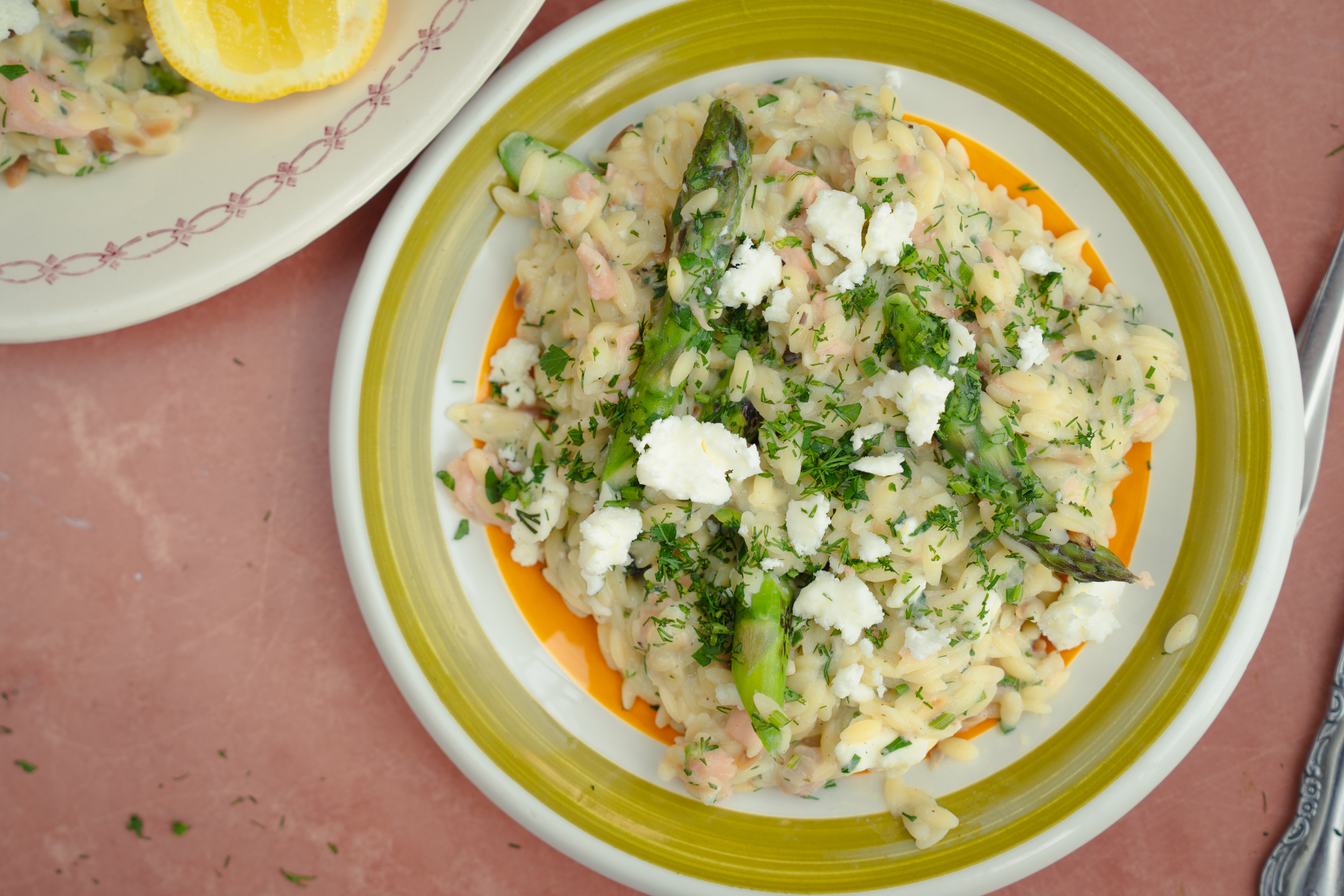 6. Griekse orzo met groene asperges, zalmfilet en véél frisse kruiden