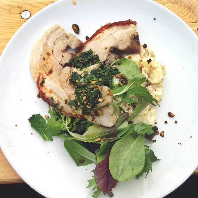 En op het festival Into the great wide open at uw hoofdredacteur een goddelijk bordje porchetta van BAK restaurant: