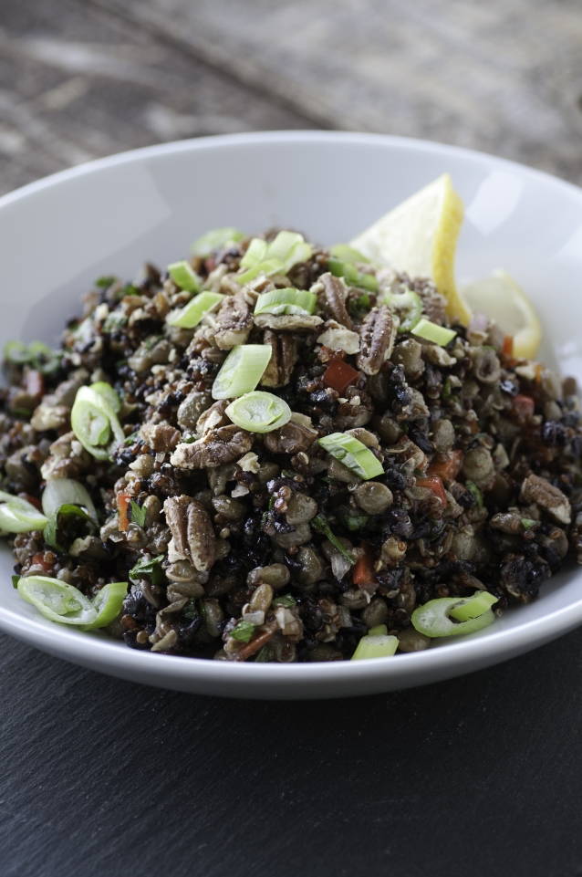 Belangrijk is vooral dat er geen sla in je salade zit. Ideale ingrediënten voor een meeneemsalade zijn granen, peulvruchten en stevigere groenten die niet slap worden als ze een tijdje in de vinaigrette liggen. Een salade met linzen, quinoa, bosui en een dressing van citroen bijvoorbeeld.