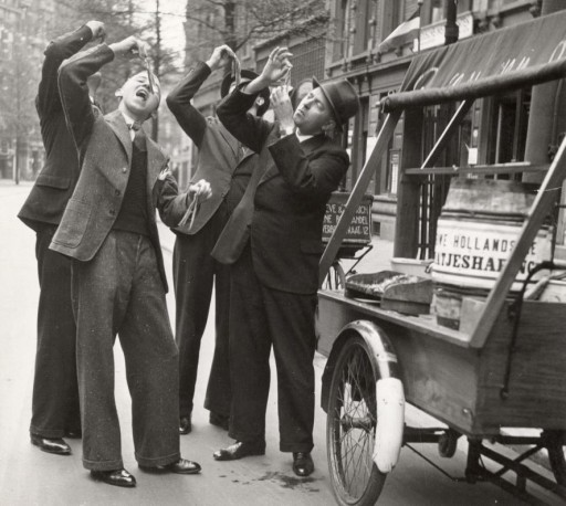Streetfood nu helemaal hip? Echt niet; wij Hollanders waren er al vroeg bij. Het Nationaal Archief maakte op hun Flickr pagina een prachtige selectie van historische kiekjes van etende mensen op straat. Harinkie?