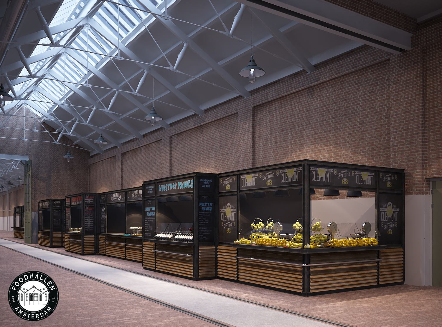 In de Foodhallen zullen twintig tot vijfentwintig verschillende horeca concepten hun (signature) gerechten presenteren en serveren. Hier eet je geen voor, hoofd of nagerecht aan een gedekte tafel, maar wandel je met een wijntje rond de verschillende ‘stalletjes’.
