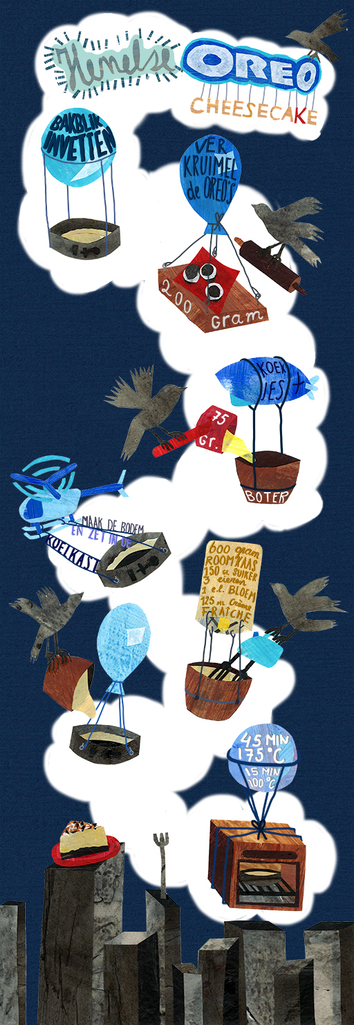 Recept in de vorm van een illustratie: hemelse Oreo cheesecake