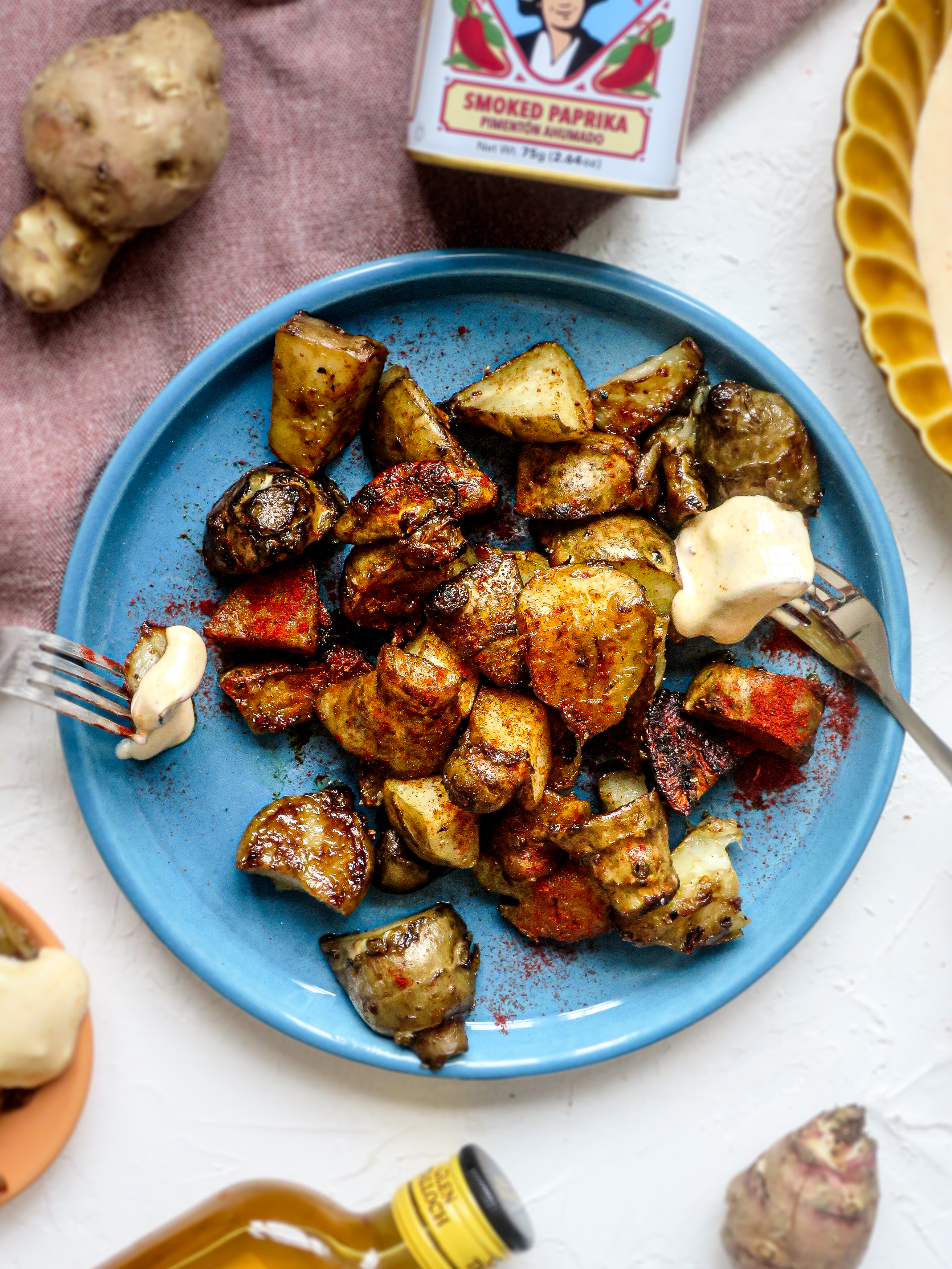 > Naar recept: patatas bravas van aardpeer met whiskymayo