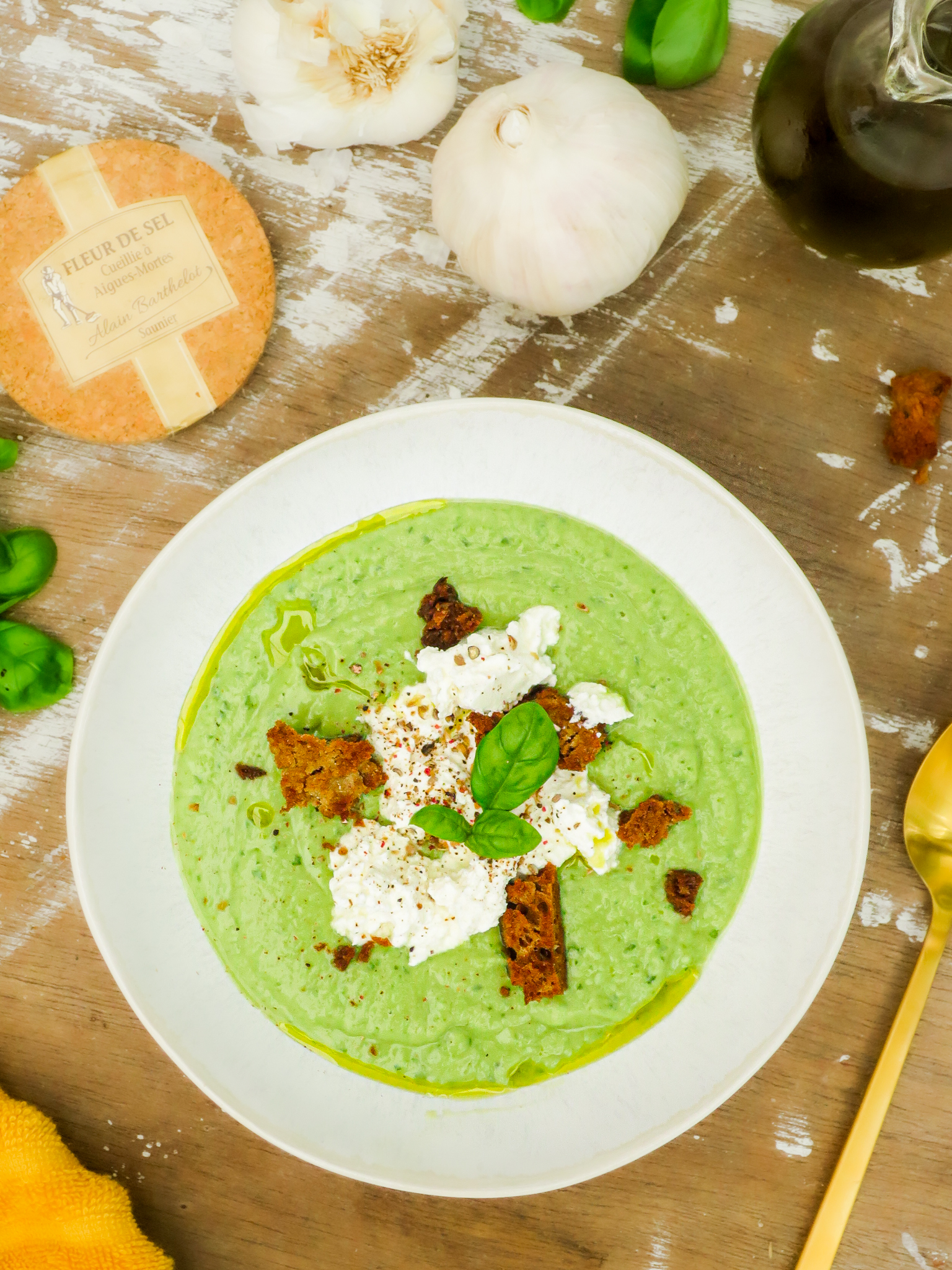 3. Groene gazpacho met avocado, komkommer, appel & ricotta