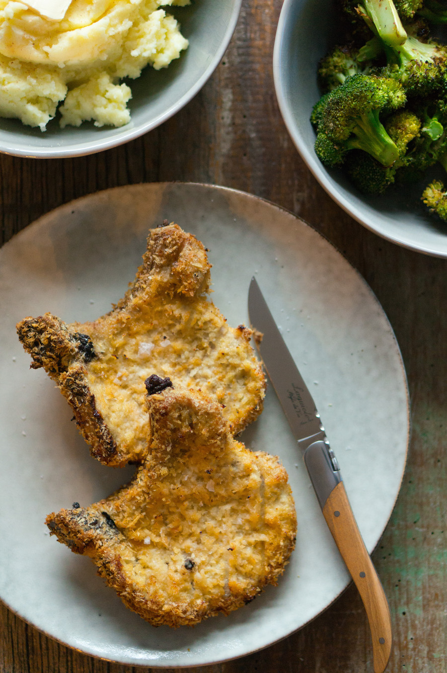 Deze krokante karbonades met Parmezaanse kaas kun je helemaal in de oven maken. Inclusief geroosterde broccoli!
