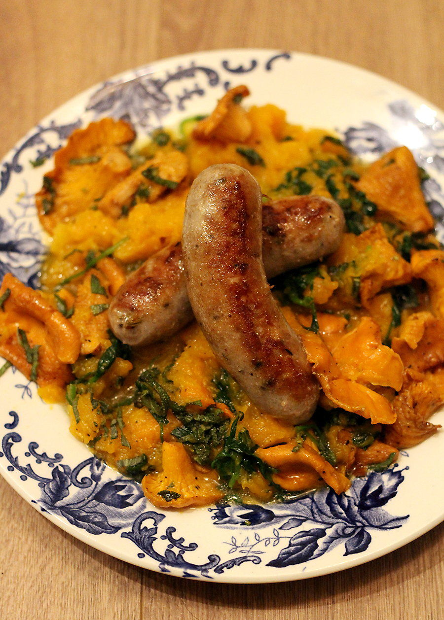 > Recept: Culy Homemade: pompoen stamppot met worstjes en cantharellen