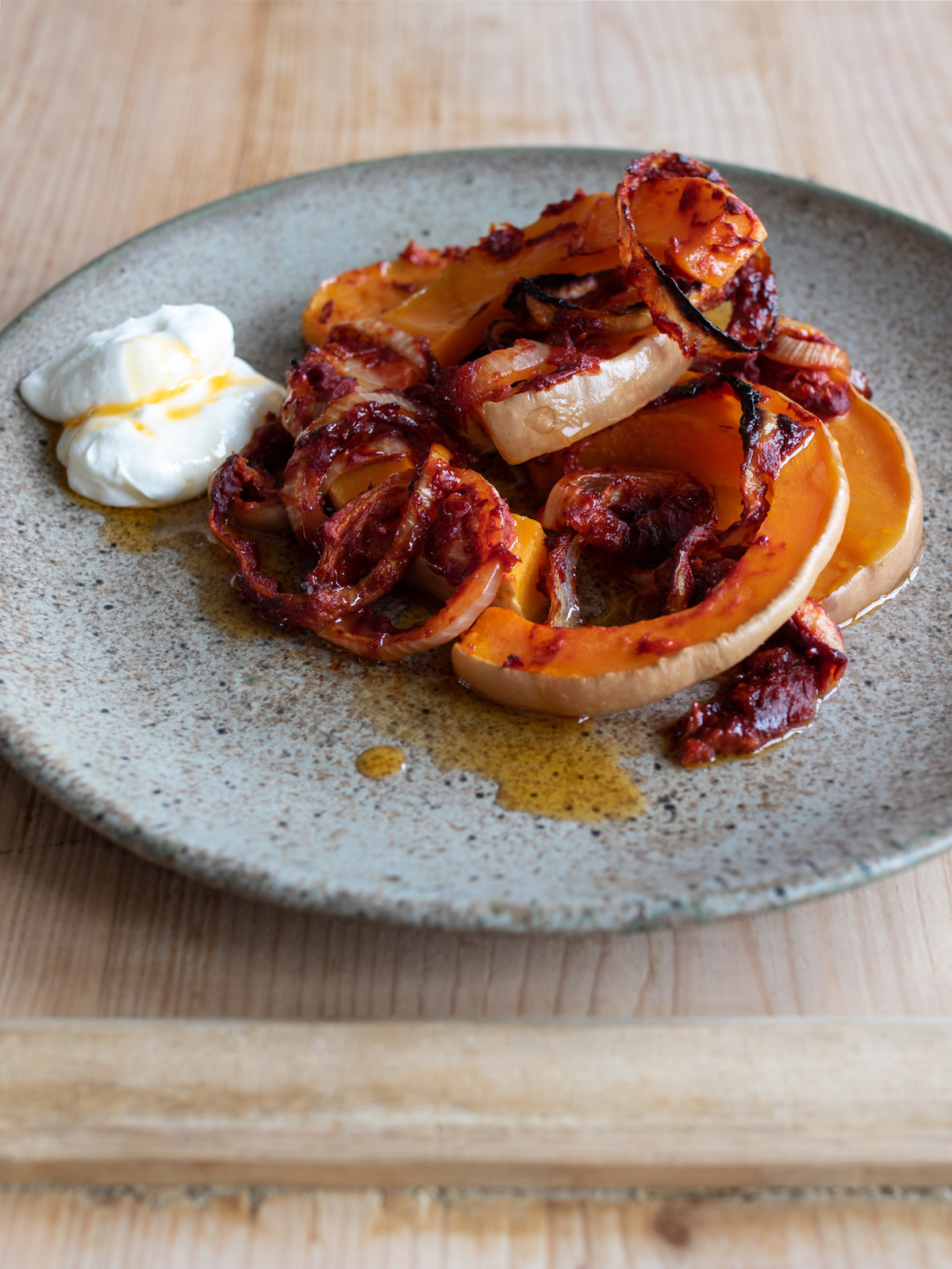 > Recept: Sinkonta: Turkse pompoen met spicy krokante uien