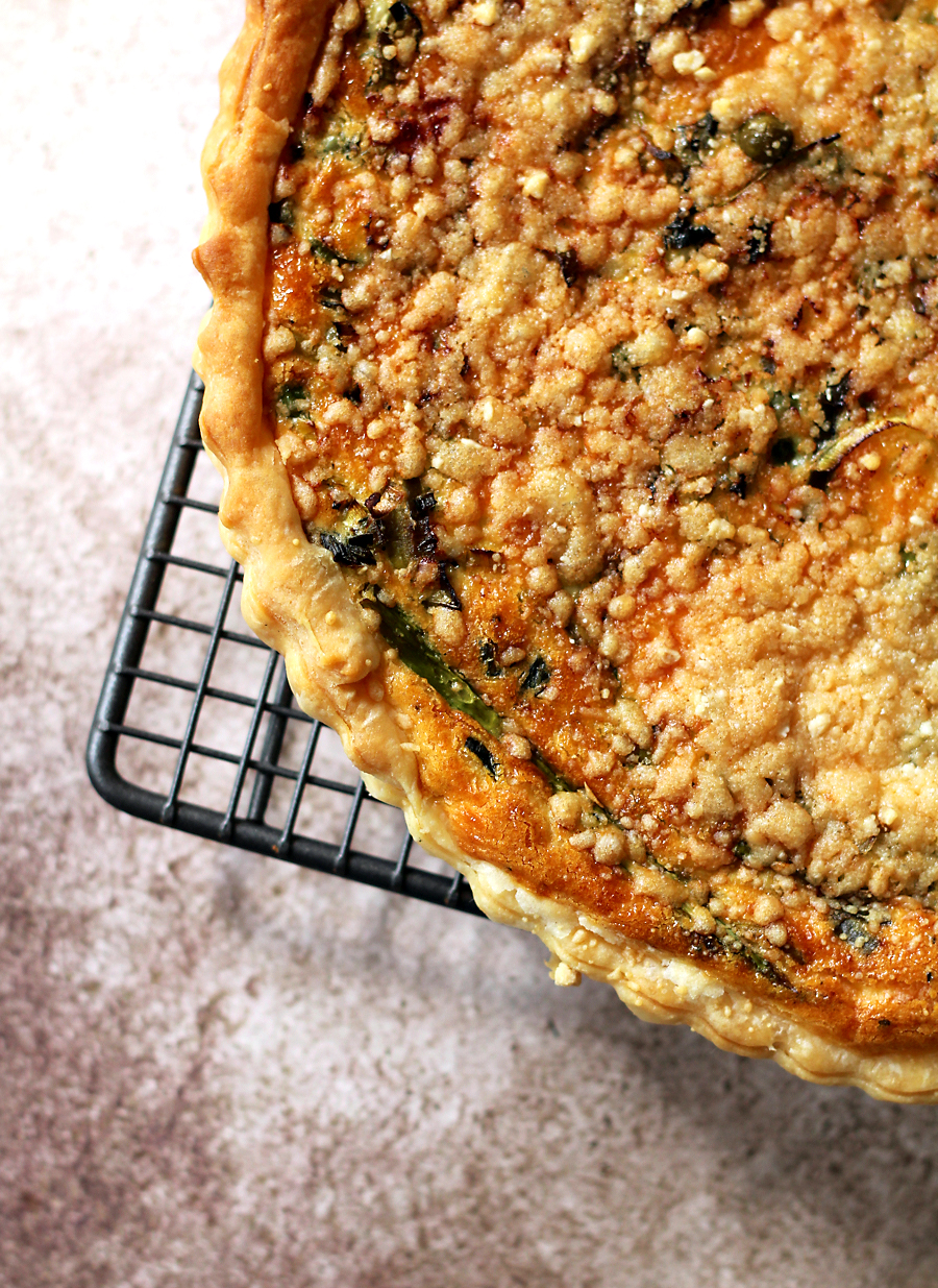 Deze lente quiche is fris, licht en helemaal vegetarisch. En als je een grote lap kant-en-klaar verse bladerdeeg gebruikt, ben je helemaal snel klaar!