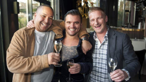 V.l.n.r.: Chefkok Francois Geurds met sommelier Robbert Veuger en kok Stefan van Sprang van restaurant Aan de Poel.