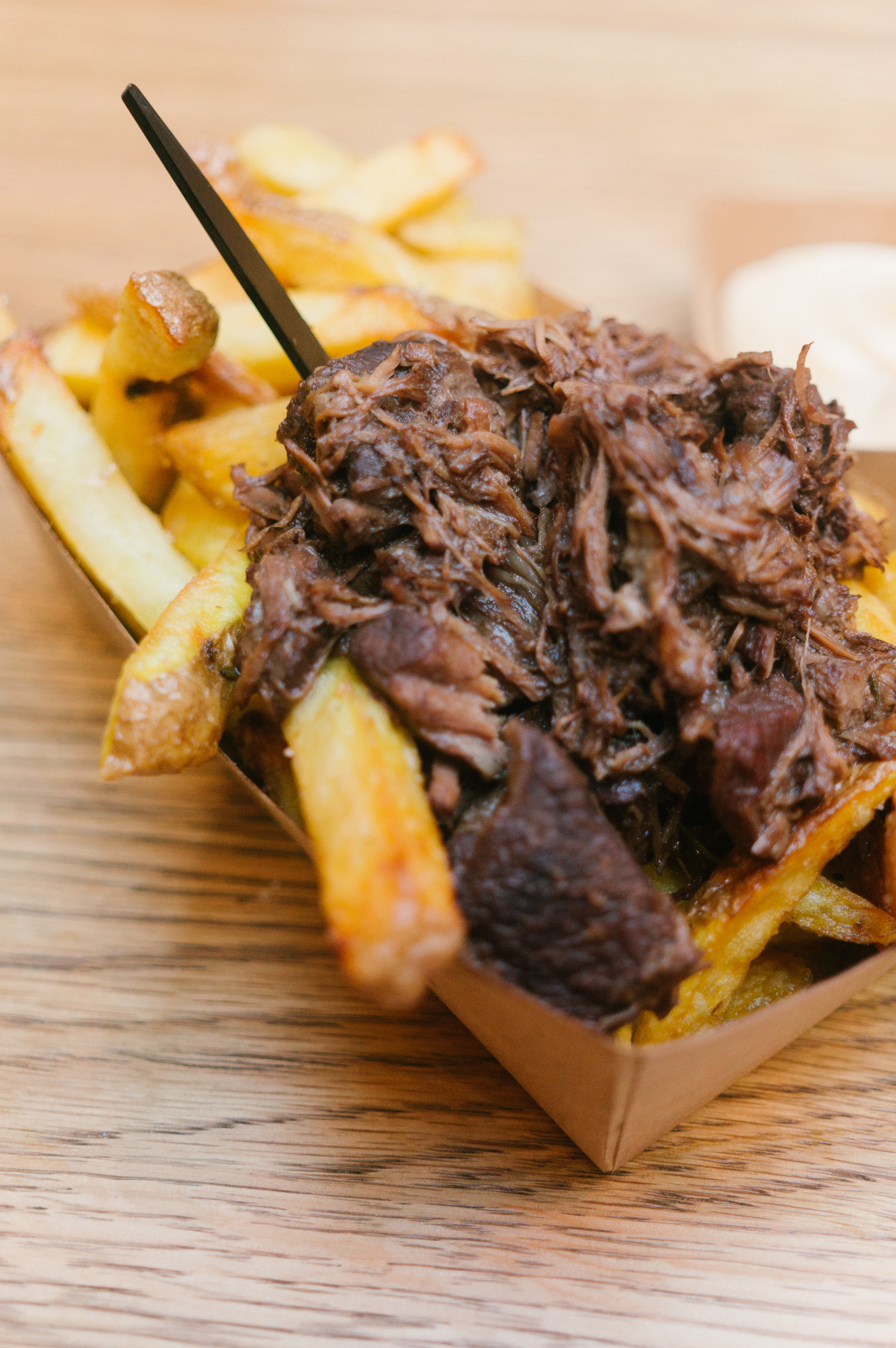 De Vlamingen hebben het goed bekeken: die serveren hun friet met een een grote schep stoofvlees erop. Stoverij, op z’n Vlaams. Serveer er eventueel – net als Sergio Herman’s Frites Atelier – een schepje ingelegde mosterdzaadjes op.