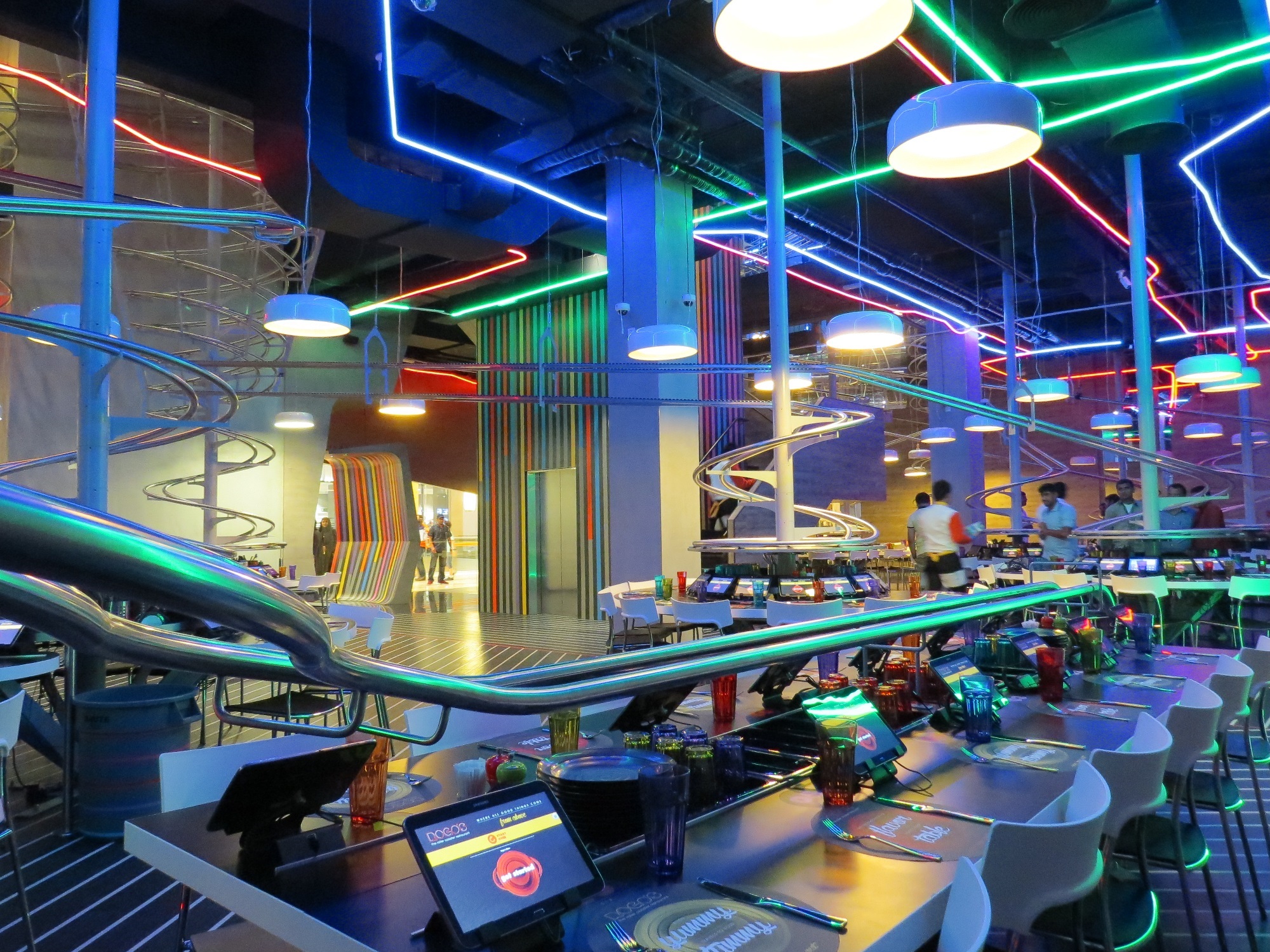 In Abu Dhabi is een restaurant geopend waar de maaltijden en drankjes niet door een serveerster naar je tafel worden gebracht, maar via een achtbaan naar je tafeltje suizen!