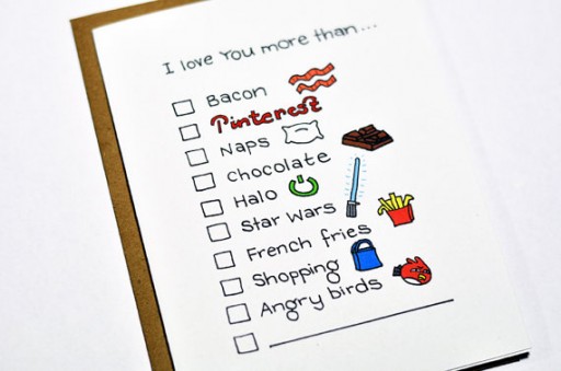 Vooruit, een beetje cheesy zijn ze wel. Maar ook zeker origineel! Wat denk je van ‘Take another little pizza my heart now baby’ of: ‘I love you more than guacamole’? Wij zeggen: té cute!