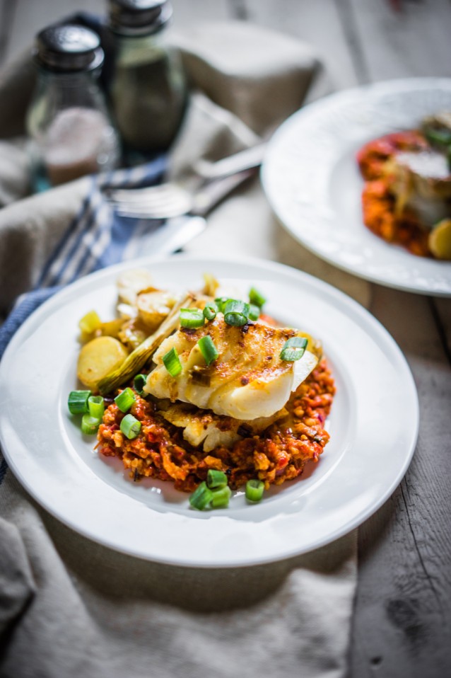 - Culy Homemade: zeeduivel met romescosaus en geblakerde prei uit de oven