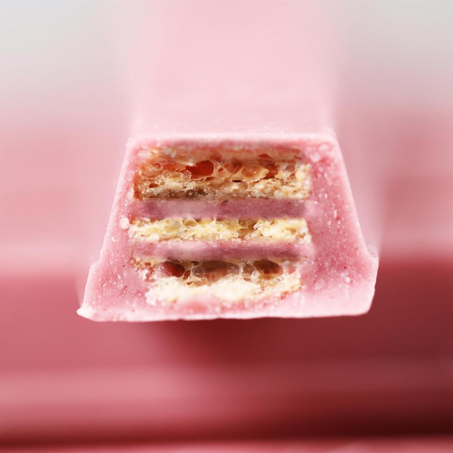 De roze KitKat is de eerste roze chocoladereep in Nederland. In Japan en Korea zijn de KitKats al sinds januari te koop en een regelrechte hit.