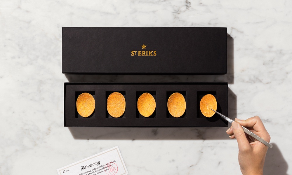 De chips worden verkocht in een doosje van vijf stuks (prijskaartje: zo’n 50 euro) en zijn ontwikkeld door St Erik’s; een kleine bierbrouwerij in Zweden. Ze zouden dan ook perfect bij een glas van hun St. Erik’s India Pale Ale passen.