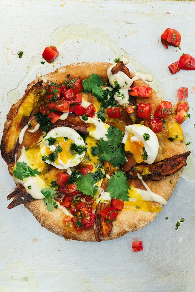En nog even over die eieren op je pita: dat is niet gewoon het huis-tuin-en-keuken-ei. Traditioneel dient er een gaminados ei gebruikt te worden: een ei dat 5 tot 24 uur lang wordt gekookt. Und warum? Omdat het ei dan een bruine, gekarameliseerde buitenkant krijgt, met een romige textuur vanbinnen.