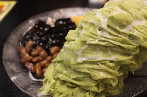 Het ijs is een soort roomijs wat met een machine ‘geschaafd’ wordt tot flinterdun ijs, wat ook wel lijkt op dunne laagjes papier. De ijszaak geeft nadrukkelijk aan dat het geen frozen yoghurt is, geen roomijs, geen schaafijs maar enkel luistert naar de naam SNO™. Okee.
