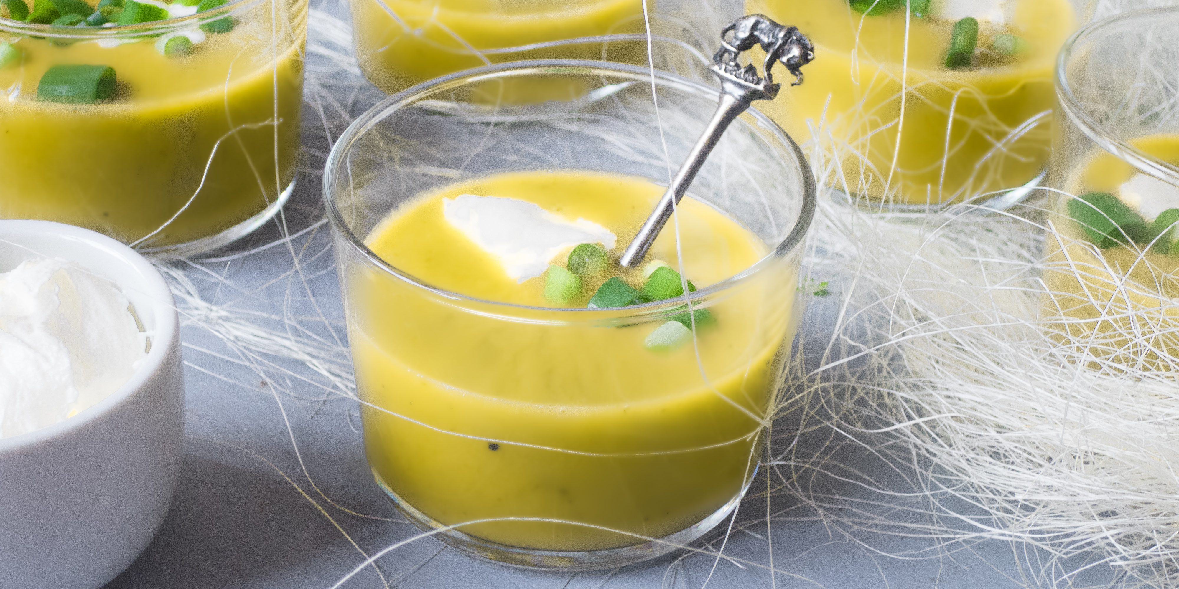 > Naar het recept: aardappel-preisoep met rozemarijn en zure room