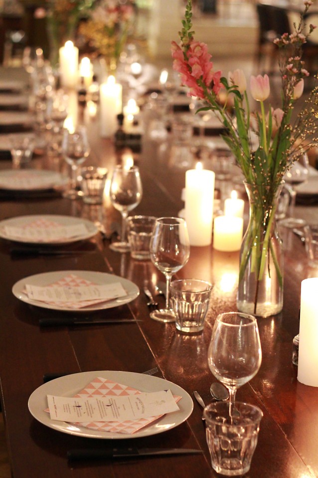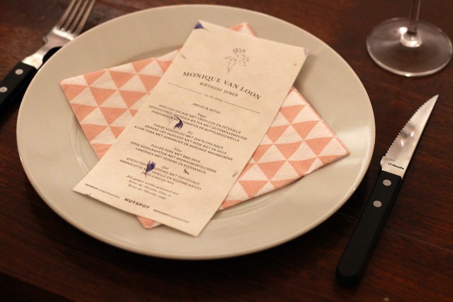 Samen met de mensen achter Hutspot dacht ik het feestje uit. 16 mensen, aan één lange tafel, in een relaxte setting. Goede muziek zachtjes op de speakers, een mooi aangeklede tafel en het lekkerste eten en drinken.