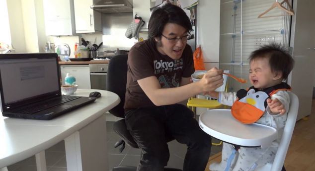 Dat baby’s vaak moeilijk zijn met eten is algemeen bekend. Deze Koreaanse vader bedacht iets slims om zijn té schattige 10-maanden oude baby tóch te laten eten.
