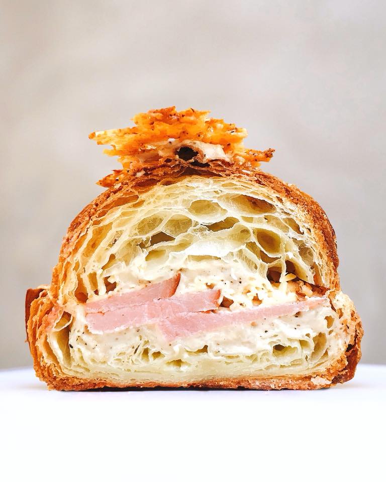 Bovendien vinden ze de ham-kaas croissant hier opnieuw uit, met dikke plakken ham, Goudse kaas, Cheddar, béchamelsaus en knapperige stukjes kaas.