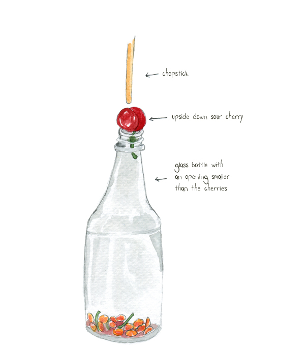 Je hebt alleen een fles, een Aziatisch eetstokje en (duh) kersen nodig.