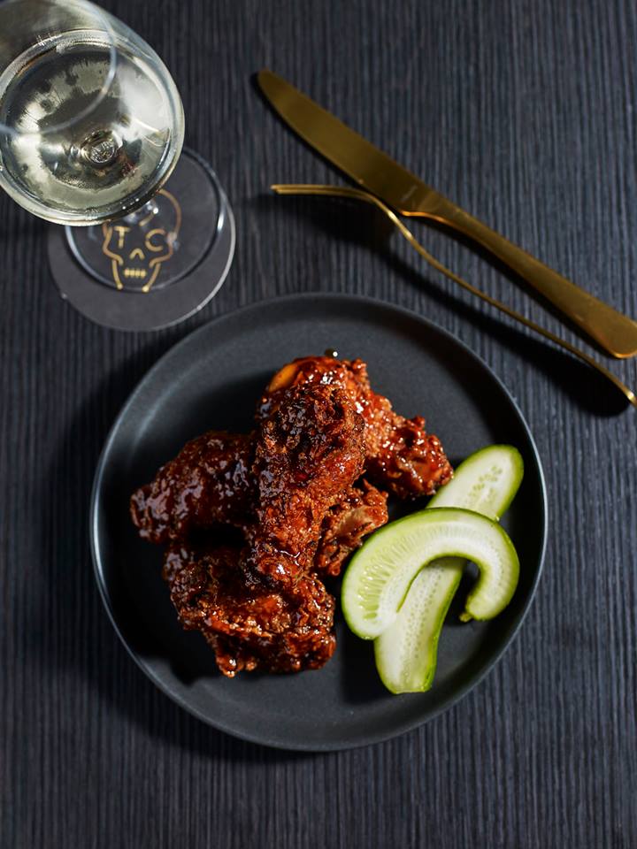 En je kunt natuurlijk niet weggaan zonder de Carter chicken wings te hebben geproefd: gegrilde kippenvleugeltjes met Bey’s hot sauce.