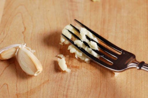 Wil je graag versgeraspte gember of fijngeperste knoflook, maar geen (fijne) rasp bij de hand? Gebruik een vork!