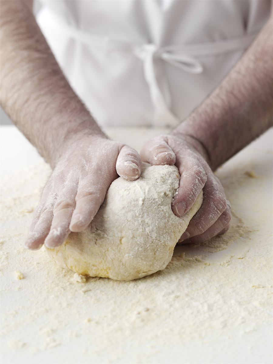 Door het deeg te kneden, activeer je de gluten. En juist die zorgen (naast allergie bij sommige mensen) voor die luchtige structuur van je pizzadeeg. Hier kun je je staande mixer voor aan het werk zetten. Met de hand kan ook: het deeg is klaar als het aanvoelt als een samenhangend, stevig geheel.