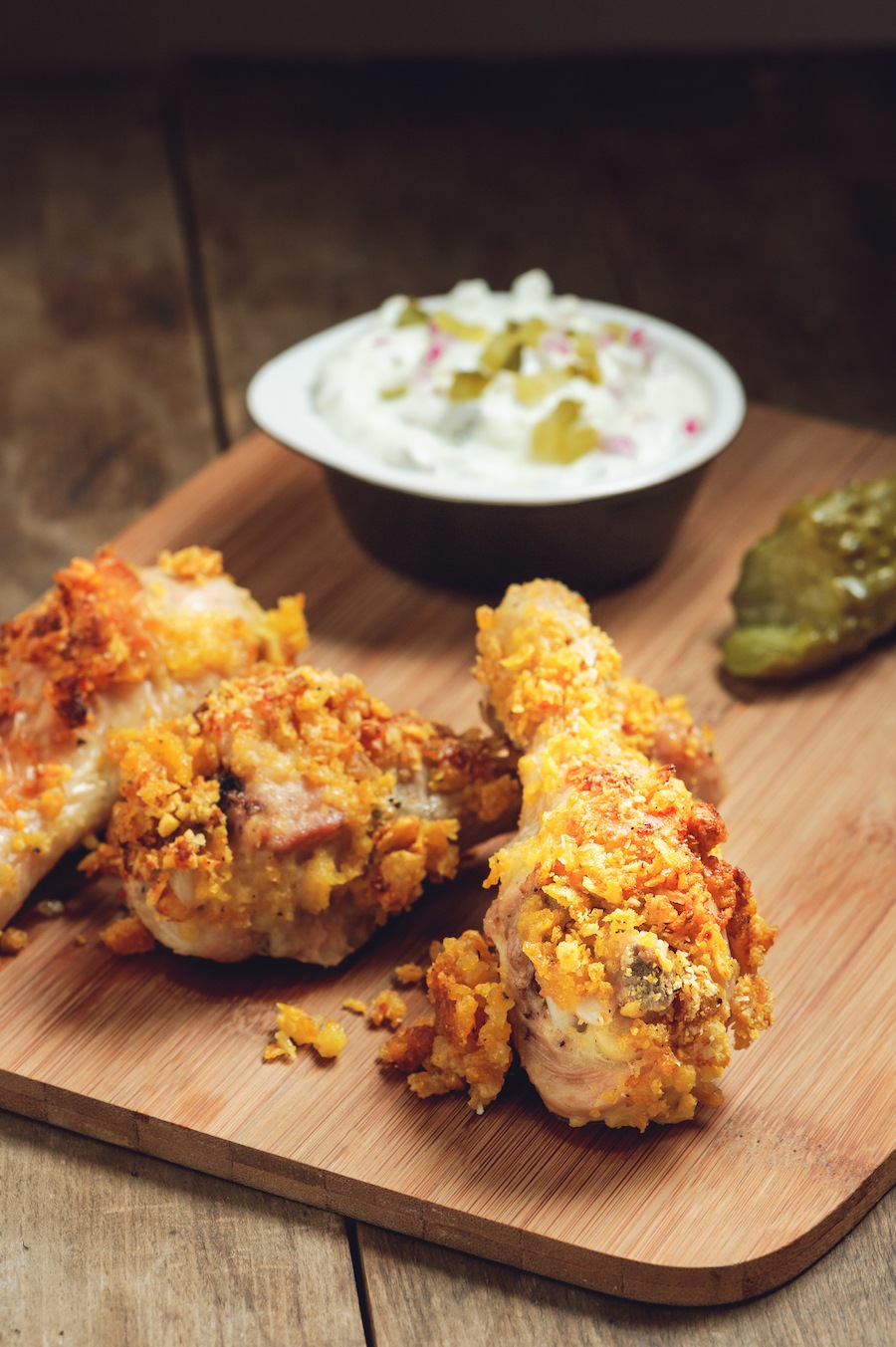Helemaal slim: voeg een deel van de kruiden voor je fried chicken alvast toe aan de karnemelk. Zo kunnen de smaken goed in de kip trekken.