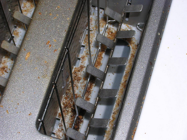 Gebruik een klein kwastje om kruimels uit je broodrooster te halen.