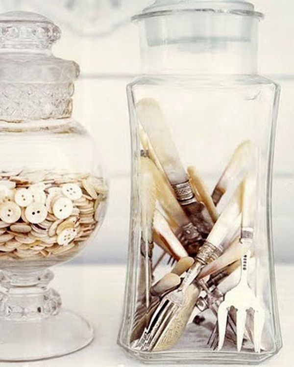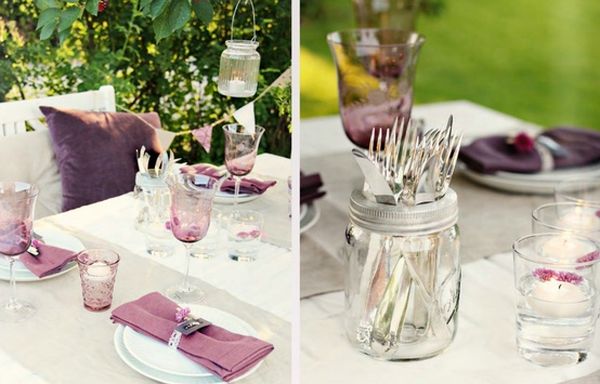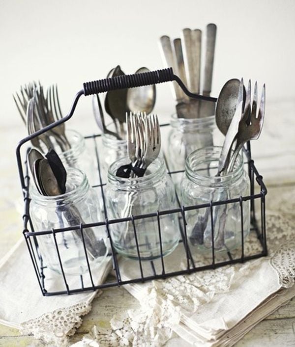 Leuk idee voor een picknick, buitenfeestje of bij een grote groep eters aan tafel: je bestek in glazen (weck)potjes en zo op tafel zetten. Eventueel nog in een leuk mandje, mocht je die hebben.