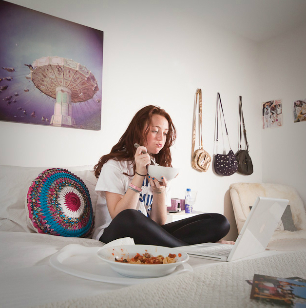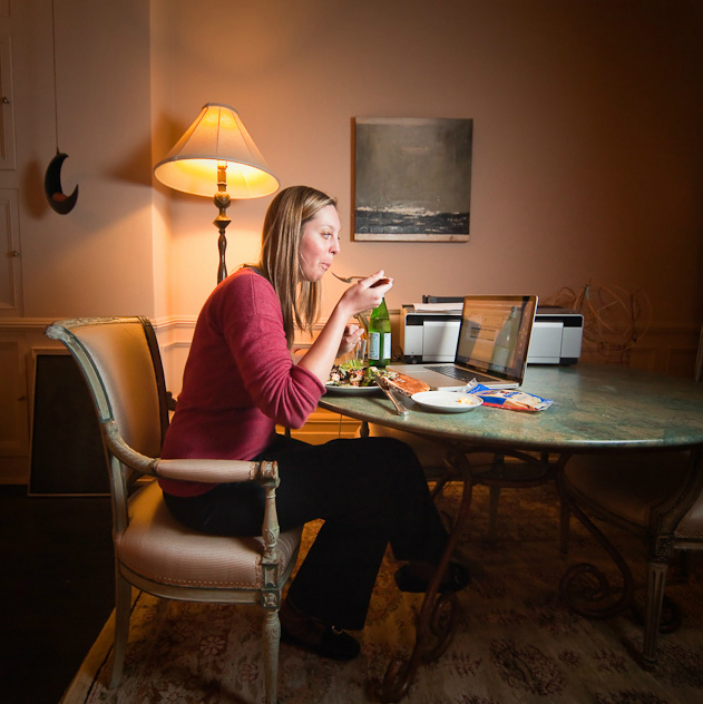Alleen aan tafel, op bed met een laptop of met zn tweeën op de bank. Fotografe Miho Aikawa maakte een bijzondere fotoserie waarin te zien is hoe, waar en met wie New Yorkers eten.