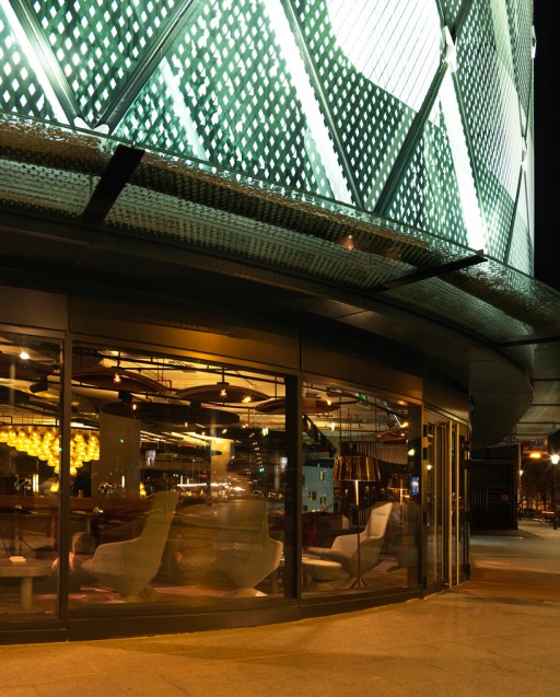 Hij brengt met het design van het restaurant een ode aan de jaren ’70 door veel gebruik te maken van grof en industrieel materiaal. Daarnaast werkt hij met grote beton- en koperoppervlakten en zijn de accessoires (zoals de meubels en lampen, maar zelfs de wc’s!) veelal van koper, marmer en leer gemaakt.