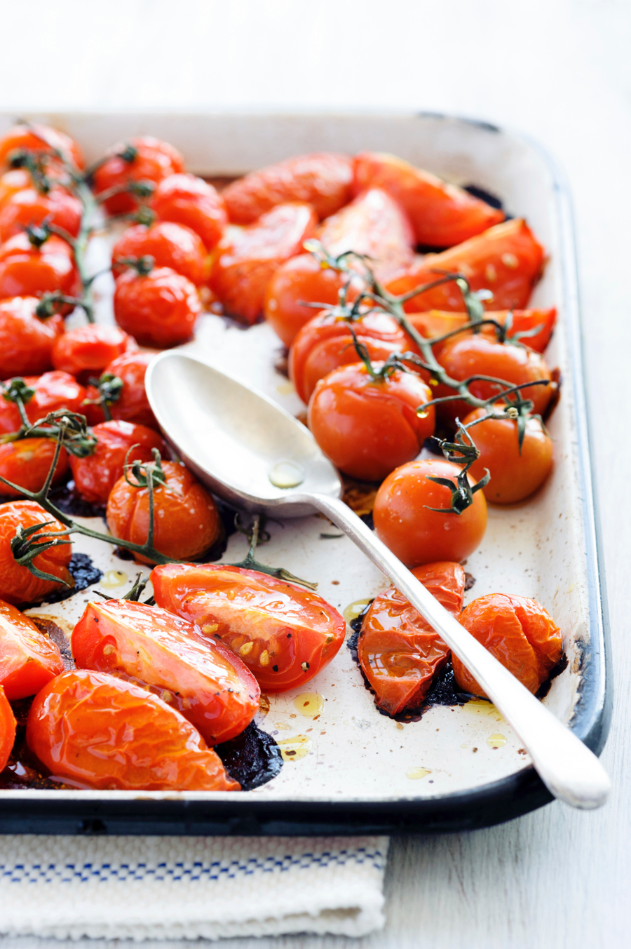 Mmm… tomaten! Thuis gedroogde tomaatjes zijn hartstikke lekker, maar roosteren kost een stuk minder tijd en smaakt minstens net zo goed.