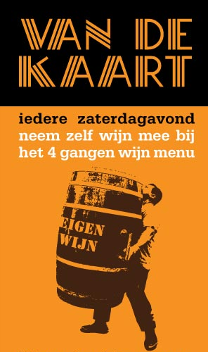 Ook bij Café de Zaak in Utrecht schuif je lekker aan zonder de verplichting om iets te bestellen. Het kan echter ook andersom: dineren in een chic sterrenrestaurant met een goedkoop flesje huiswijn van thuis. Bij restaurant Van de Kaart in Amsterdam mag je één keer per week je eigen wijn meenemen, ofwel: BYOB (bring your own bottle).