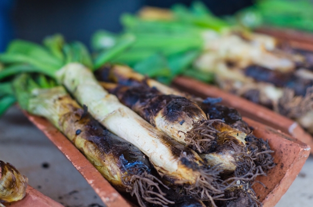 In Spanje doen ze iets soortgelijks: in de regio Catalonië kennen ze calcots, een groente die ergens tussen een prei en een lente-ui in ligt. Met die calcots maken ze calcotada: ze worden geblakerd boven een open vuurtje, gepeld, door de romescosaus gehaald en gegeten zoals een haring.