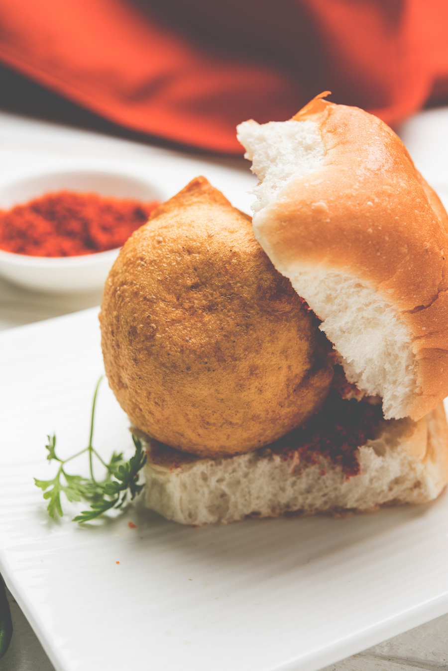 Bestel het bij een eetkraampje in Mumbai en je krijgt een wit broodje met daarop een knapperig bolletje, gemaakt van gefrituurde aardappelpuree met kruiden. Als je snel kijkt, lijkt het net een broodje bal. Maar wat vada pav zo lekker maakt, is de combinatie van zacht broodje en knapperige burger.