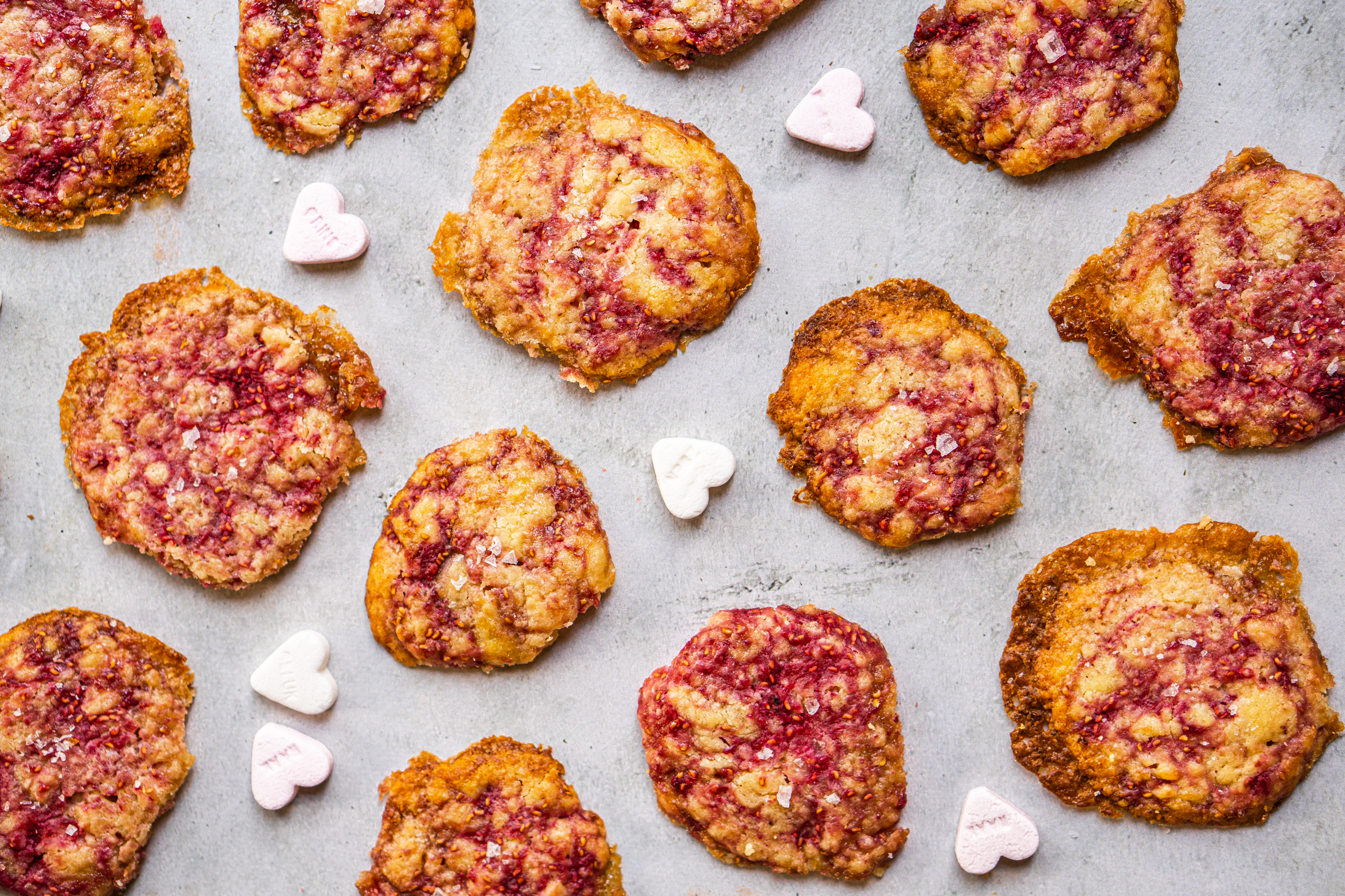 Charmanter wordt het niet: met deze homemade Valentijnskoekjes scoor je hoe dan ook punten bij je lover. Hoe smaken ze? Het beste kunnen we ze omschrijven als een boterig shortbreadkoekje met een kletskop-achtig randje. Door het beslag mengen we trouwens ook nog een handje frambozen. Dat zorgt niet alleen voor een lekker zuurtje, het maakt de link met Valentijn ook nog eens compleet.