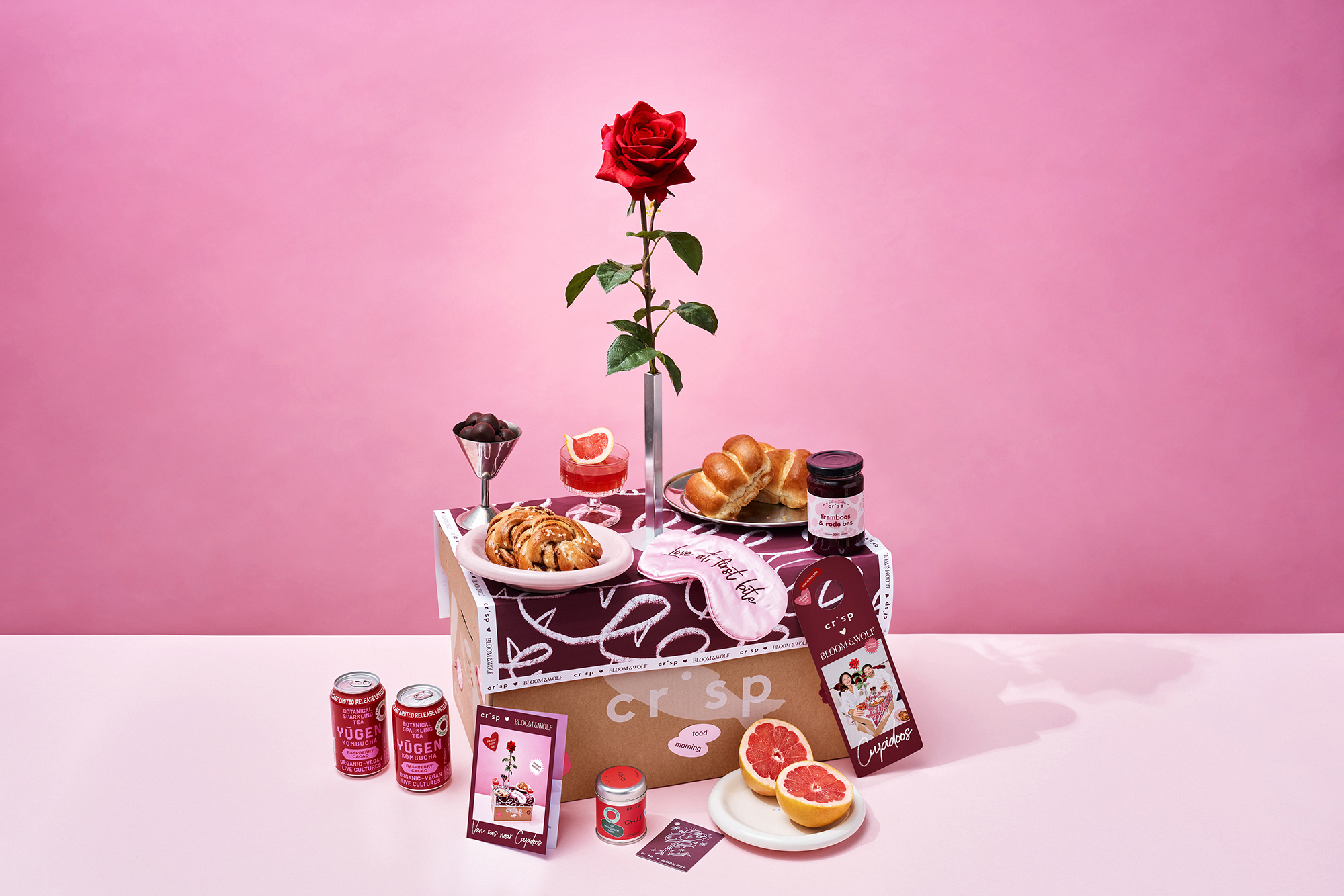 Crisp zou Crisp niet zijn mochten ze ook dit jaar niet met een passende Valentijnsactie komen. Dit keer bedachten ze de Cupidoos: een box gevuld met lekkers voor een romantische brunch, inclusief tafelkleedje en zijden roos.