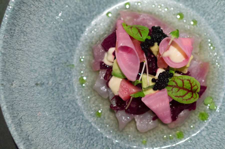 Bij restaurant Dinner at Six in Houten bijvoorbeeld, gebruiken ze kombucha in een ceviche. Een ceviche van wilde dorade in huisgemaakte kombucha met kimchi van rode biet, avocado en haringkuit, om precies te zijn. Een hele mooie manier om kombucha te gebruiken: de zuren in kombucha komen overeen met die van citrus en zijn dus ideaal om rauwe vis in te ‘garen’, zoals je doet bij ceviche.