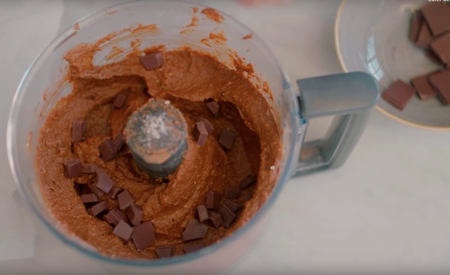 Moeilijk zijn deze brownies zeker niet, de enige voorwaarde is dat je er een keukenmachine voor nodig hebt. Check? Check. Schil dan eerst de zoete aardappels, snijd die in stukken en kook in ongeveer 15 minuten gaar. Ondertussen kun je havermeel maken door havermout te malen in je keukenmachine, en dat toe te voegen aan een beetje amandelmeel.